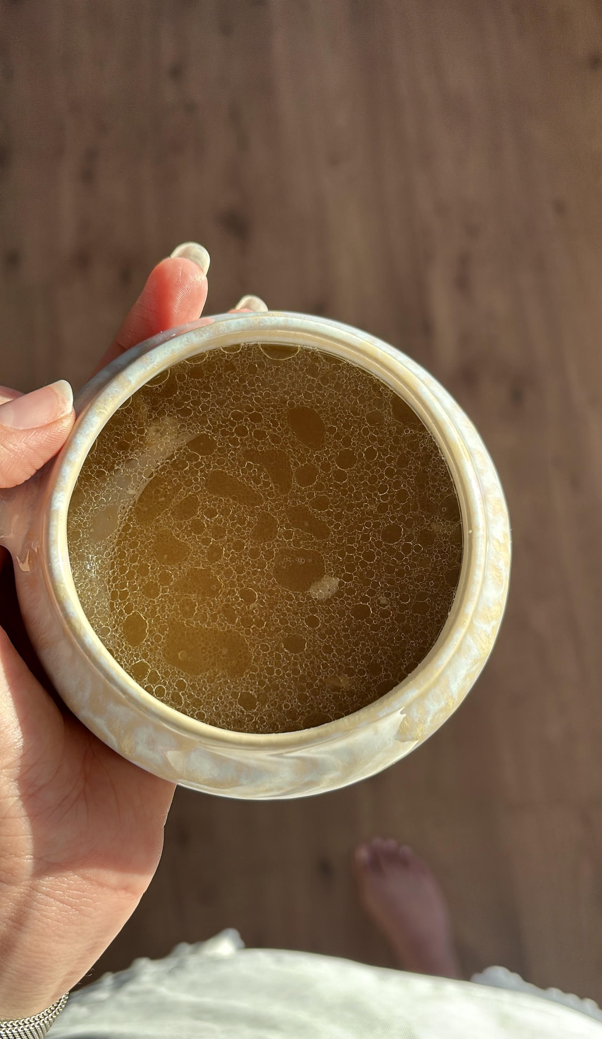 Bone broth is so nourishing and is a great way to start your morning, sipping on a warm cup of broth while soaking in some morning sun. It’s much simpler to make than you think and is full of flavour and collagen.