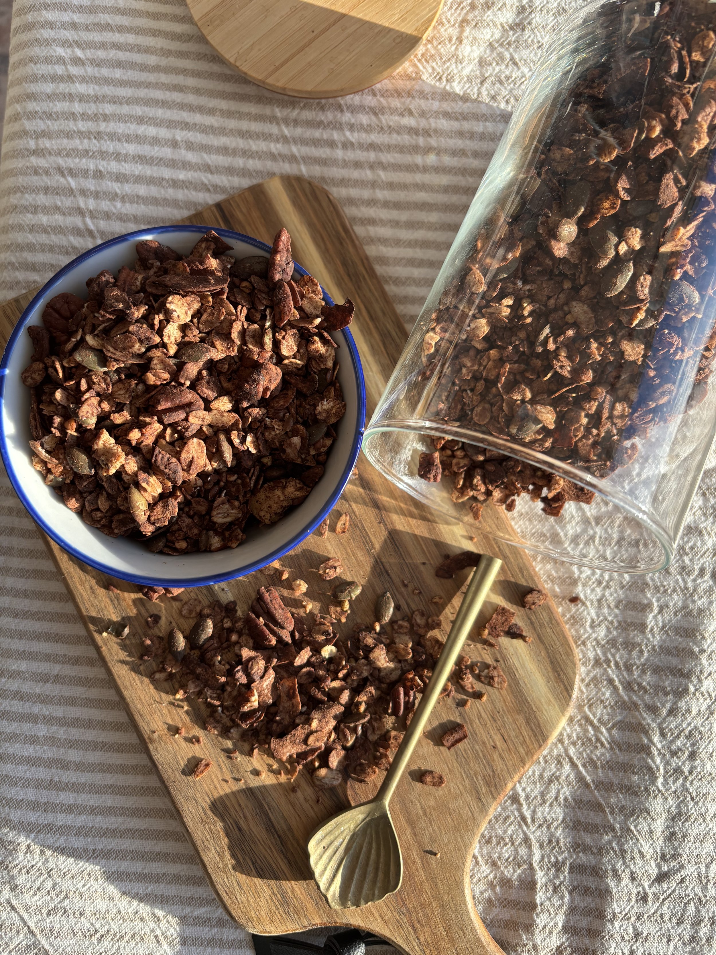 You’ll never want to buy store-bought granola again after seeing how simple and easy it is to make this delicious chocolate coconut pecan granola.